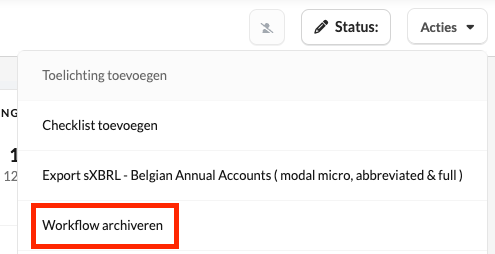 Klik bij acties op workflow archiveren