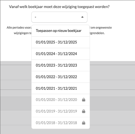 Indien er hierna een popup tevoorschijnkomt voor de mapping, duid dan aan dat dit vanaf dit jaar toegepast moet worden. Ga vervolgens terug naar stap 2.