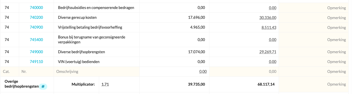 Indien je zelf een prognose wil maken kan je gebruik maken van de algemene multiplicator die voor elke categorie een zelfde default waarde gebruikt. Per categorie zelf kan je de multiplicator ook nog aanpassen.
